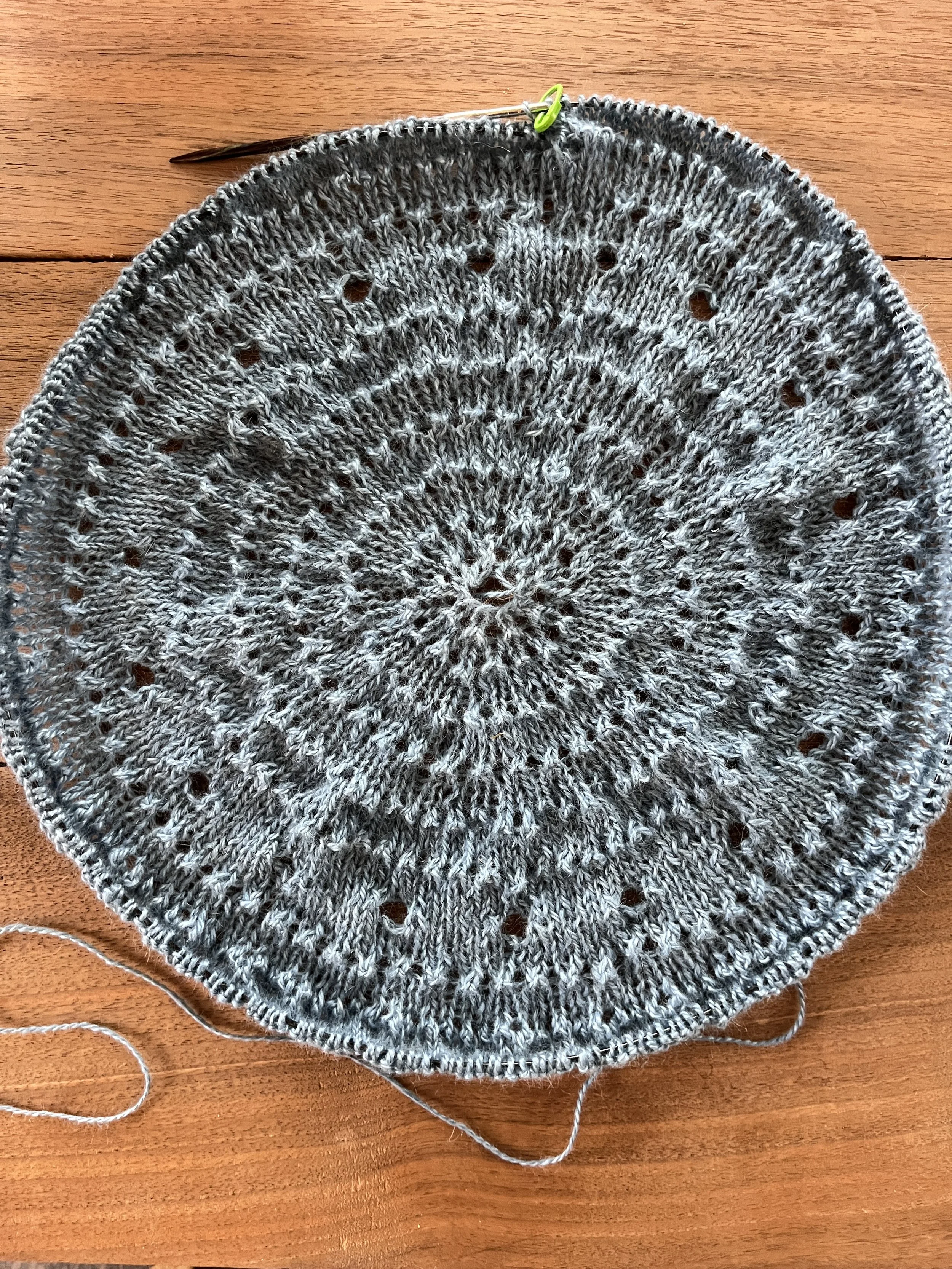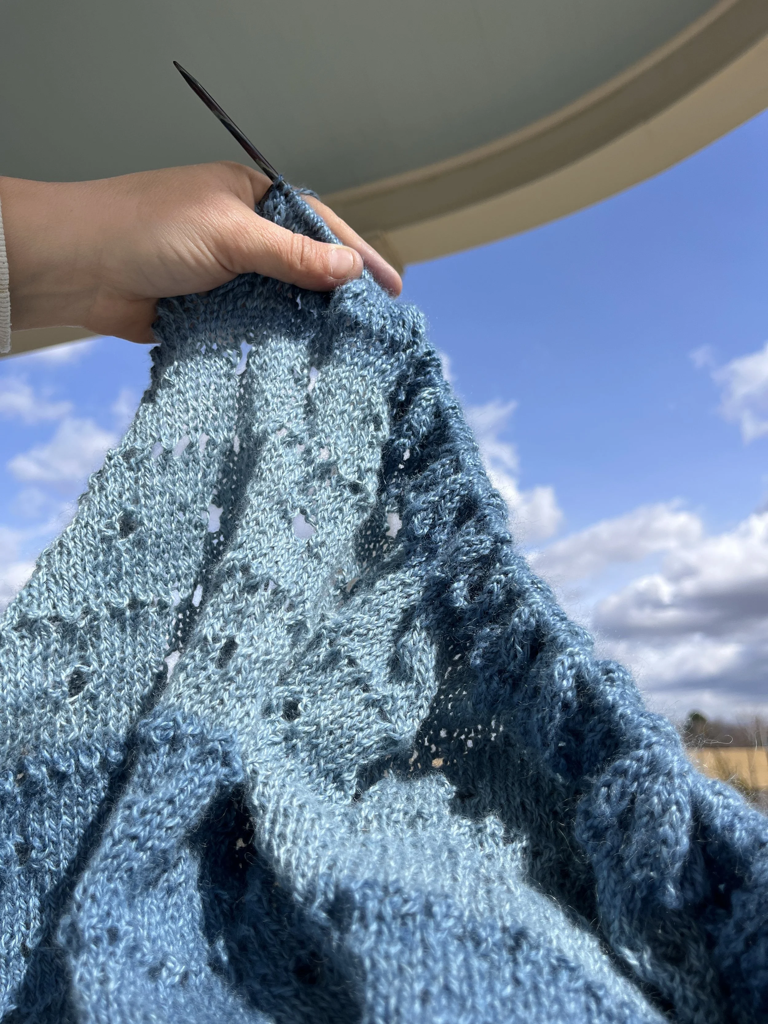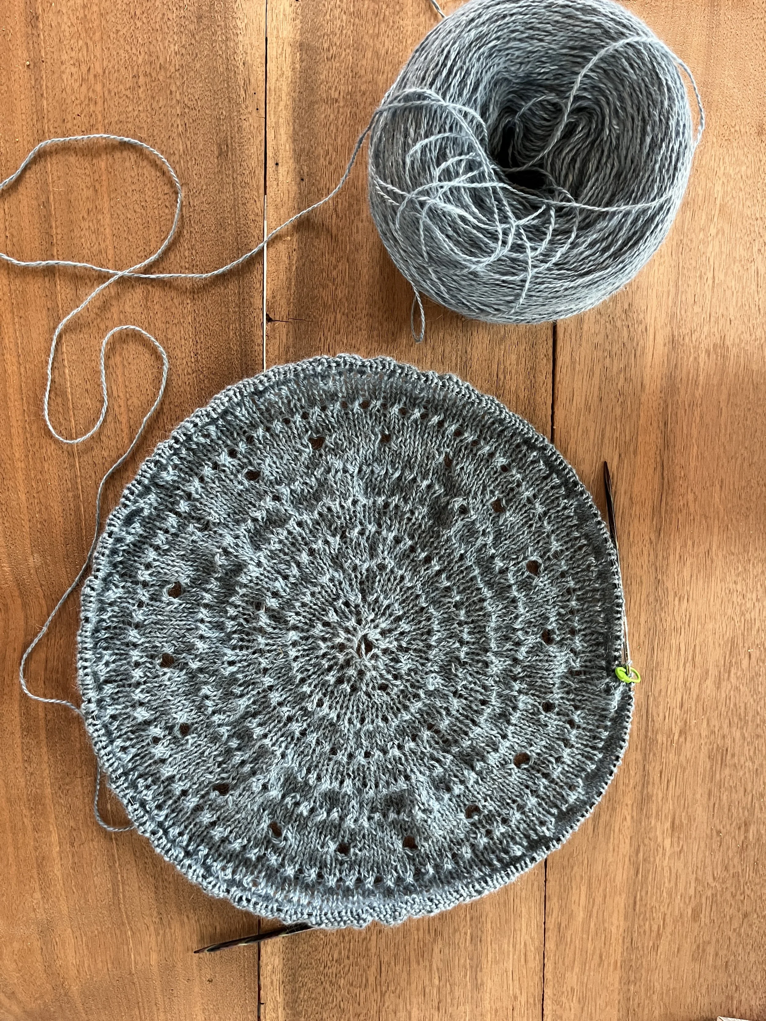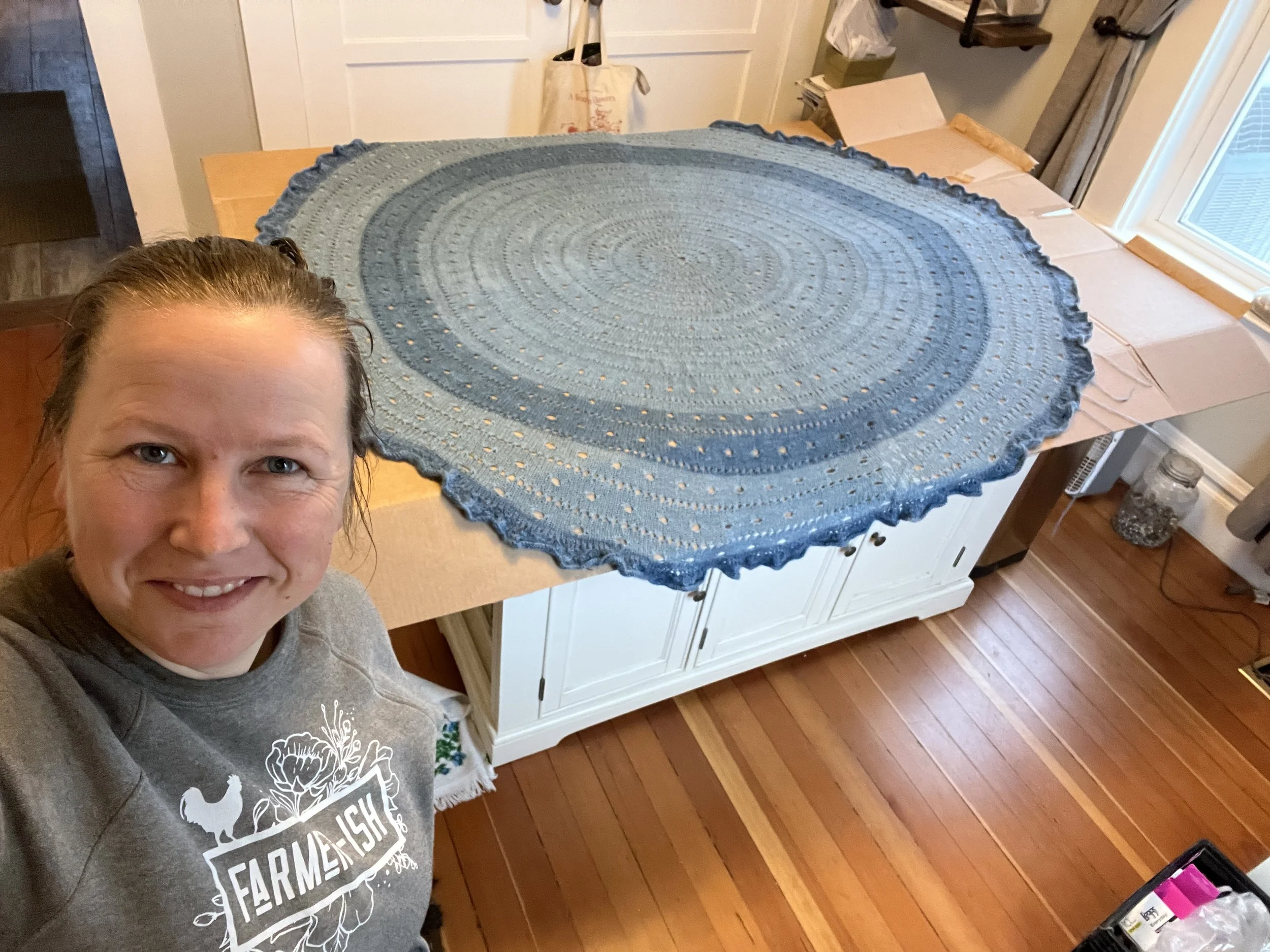 I bound off the last stitch on April 1, 2023. The bind off round was nearly 1200 stitches so that was like a victory lap.