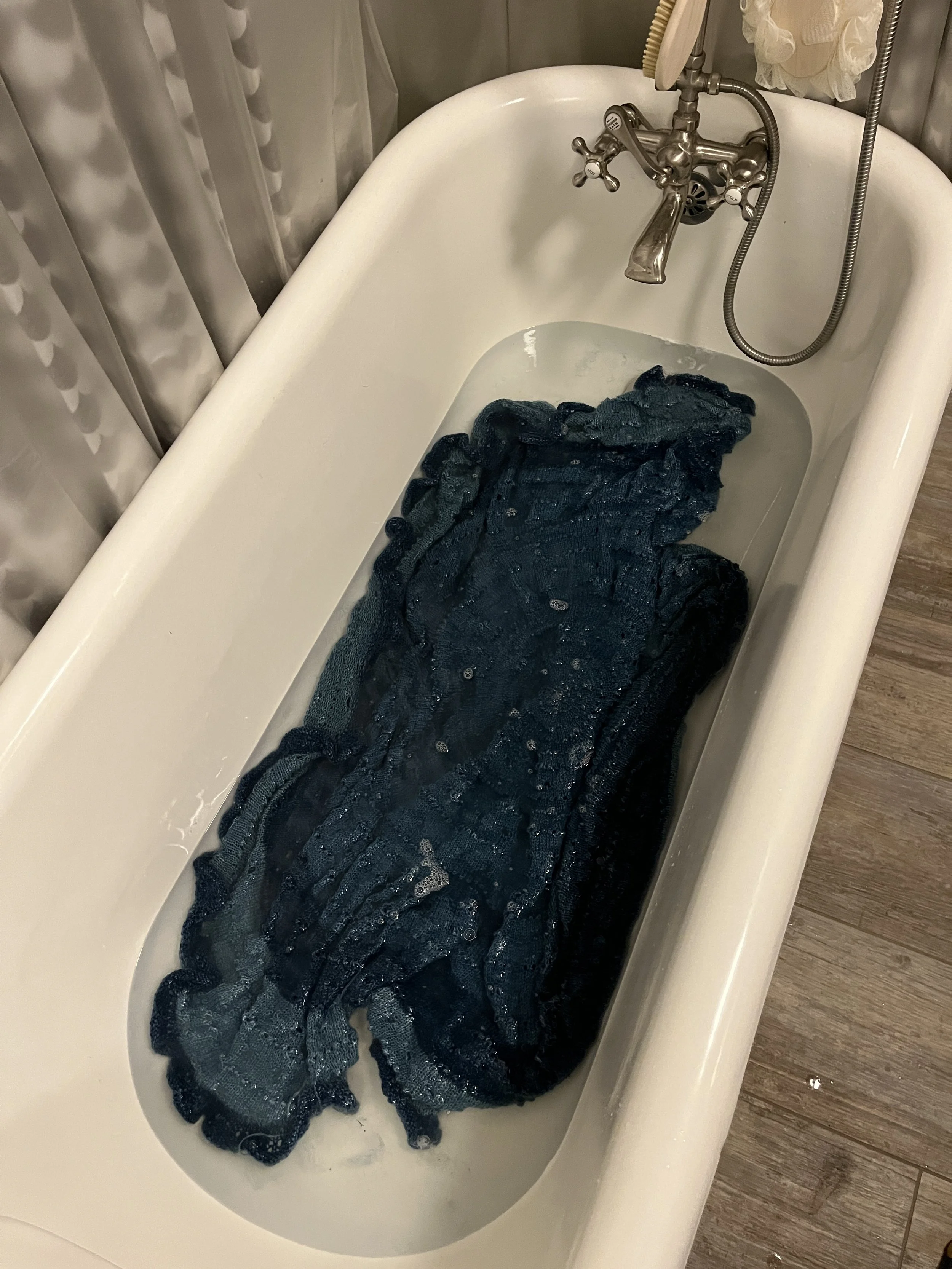 In the summer of 2022, I got it all plied up into 3 huge skeins of 2-ply fingering weight style yarn. And once day when I had a good indigo vat going, I took the chance to dye it my favorite shade of blue!