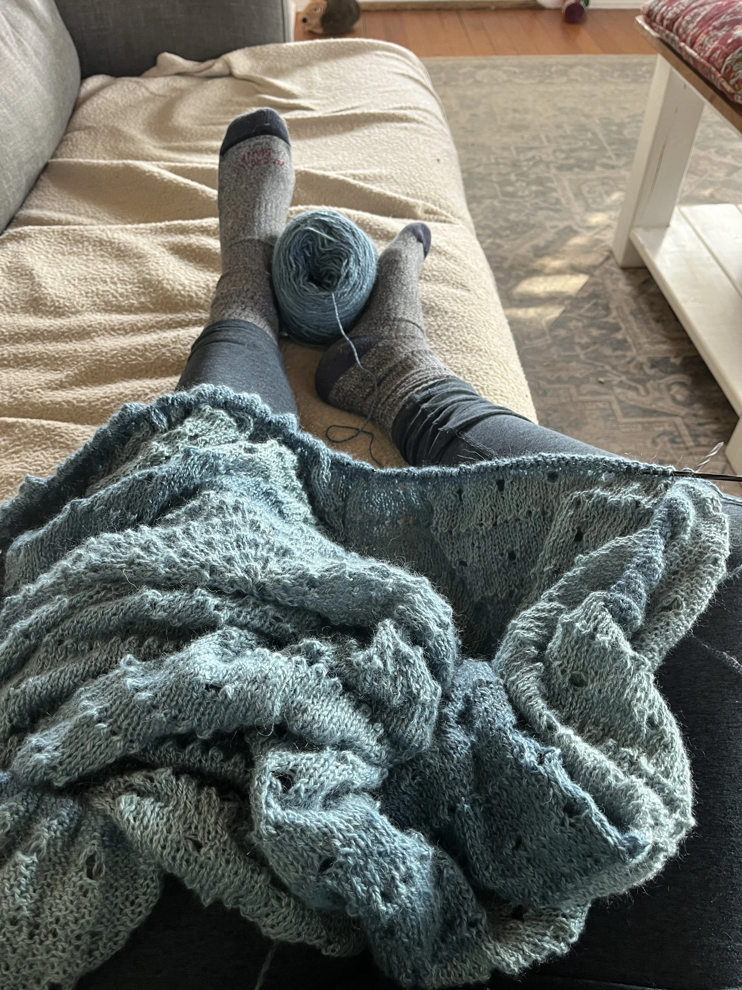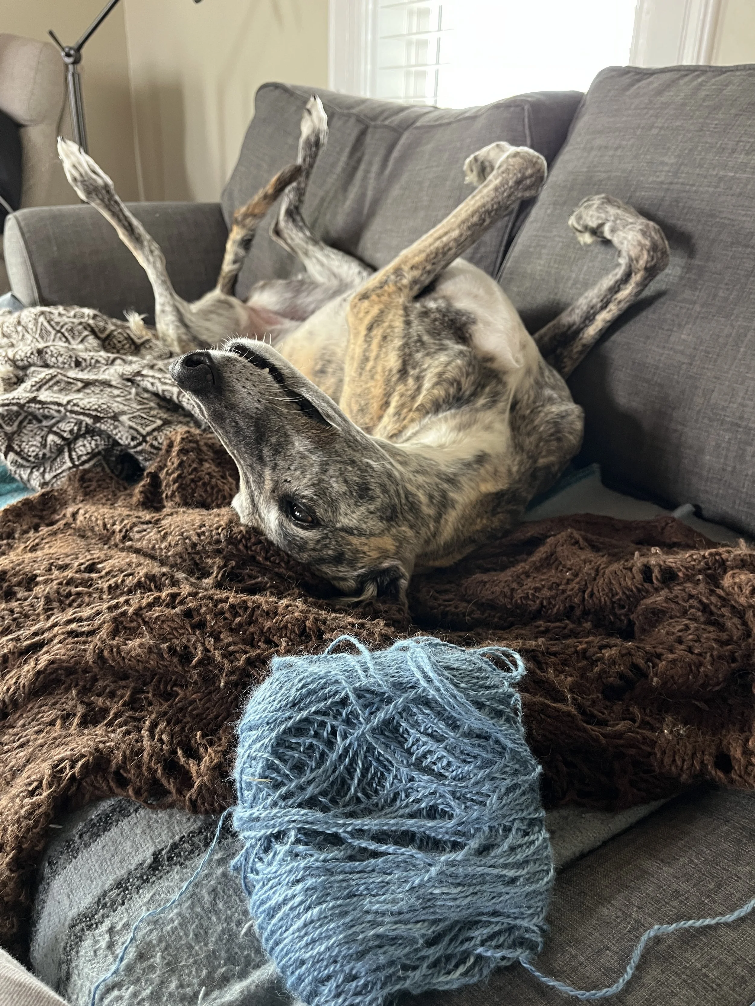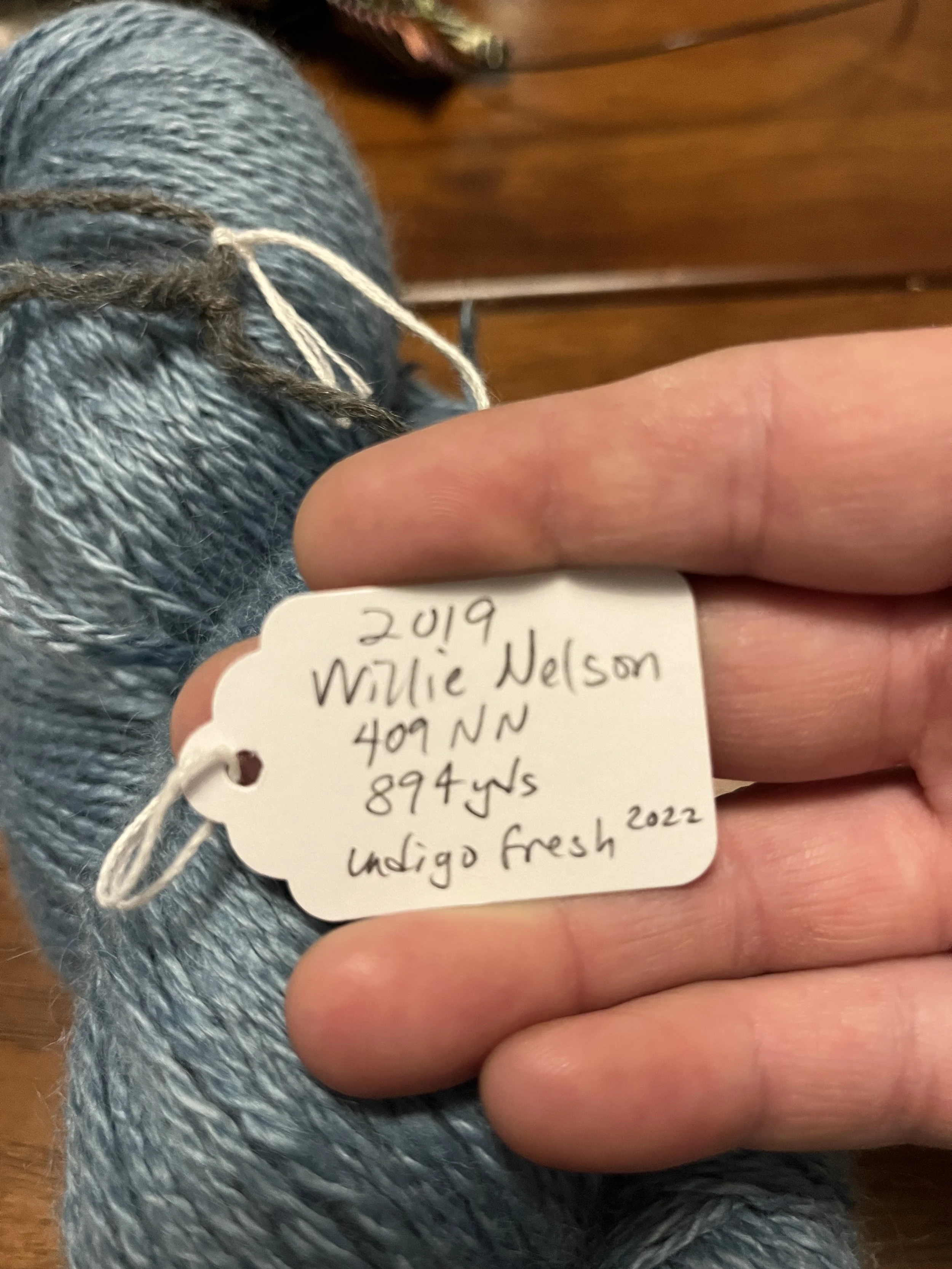 It took Willie Nelson a year to grow this fiber, and then it took me another 3ish years to hand spin and ply it, the dye it, before knitting it into this. I’m so happy with the result and have a new appreciation for big projects like this. I’m already planning to make another type of throw for the couch and maybe even the recliner.