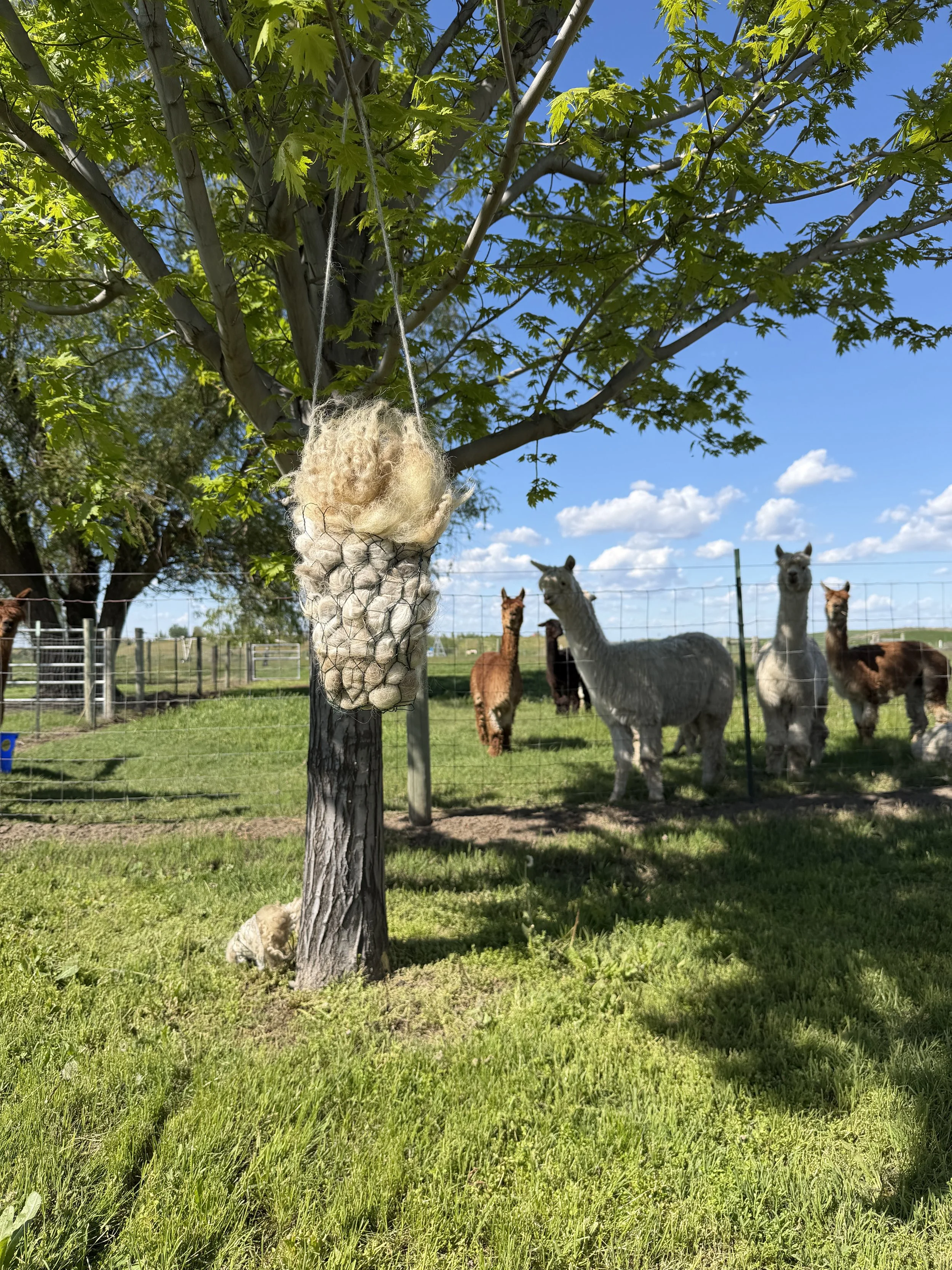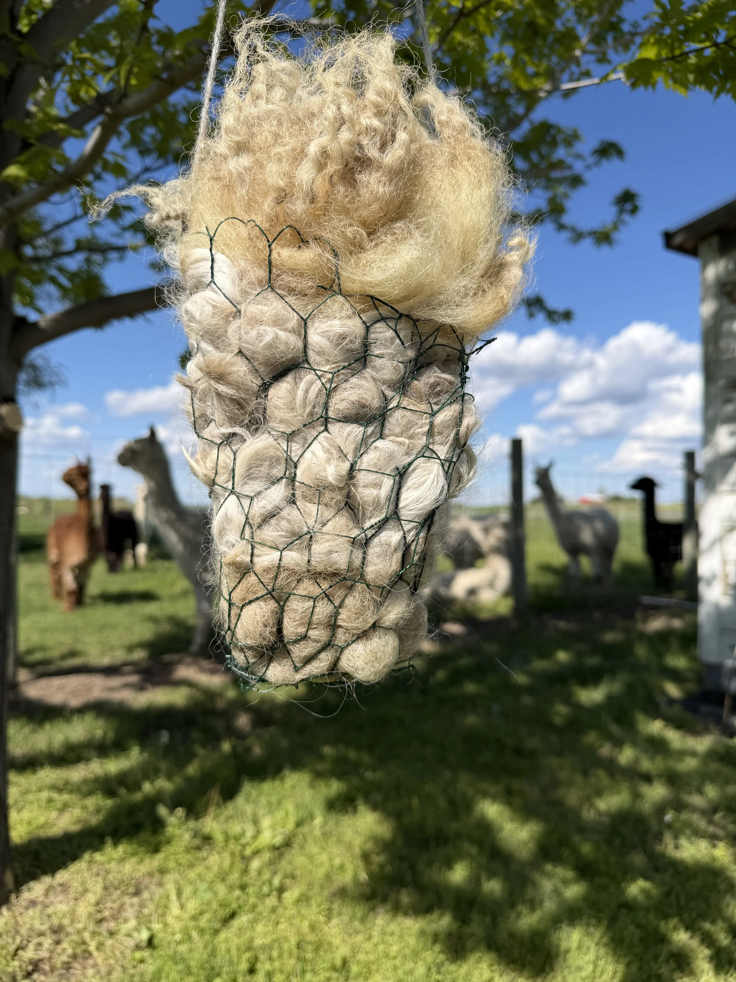 In the spring, as birds begin building their nests, they’re constantly searching for materials - soft fibers, bits of fluff, anything that will help insulate and protect what they’re creating. Alpaca fiber is naturally warm, breathable, and gentle, making it an ideal nesting material. Along with our sheep’s strong curly locks. And when it’s offered in a place they can easily access, they come.