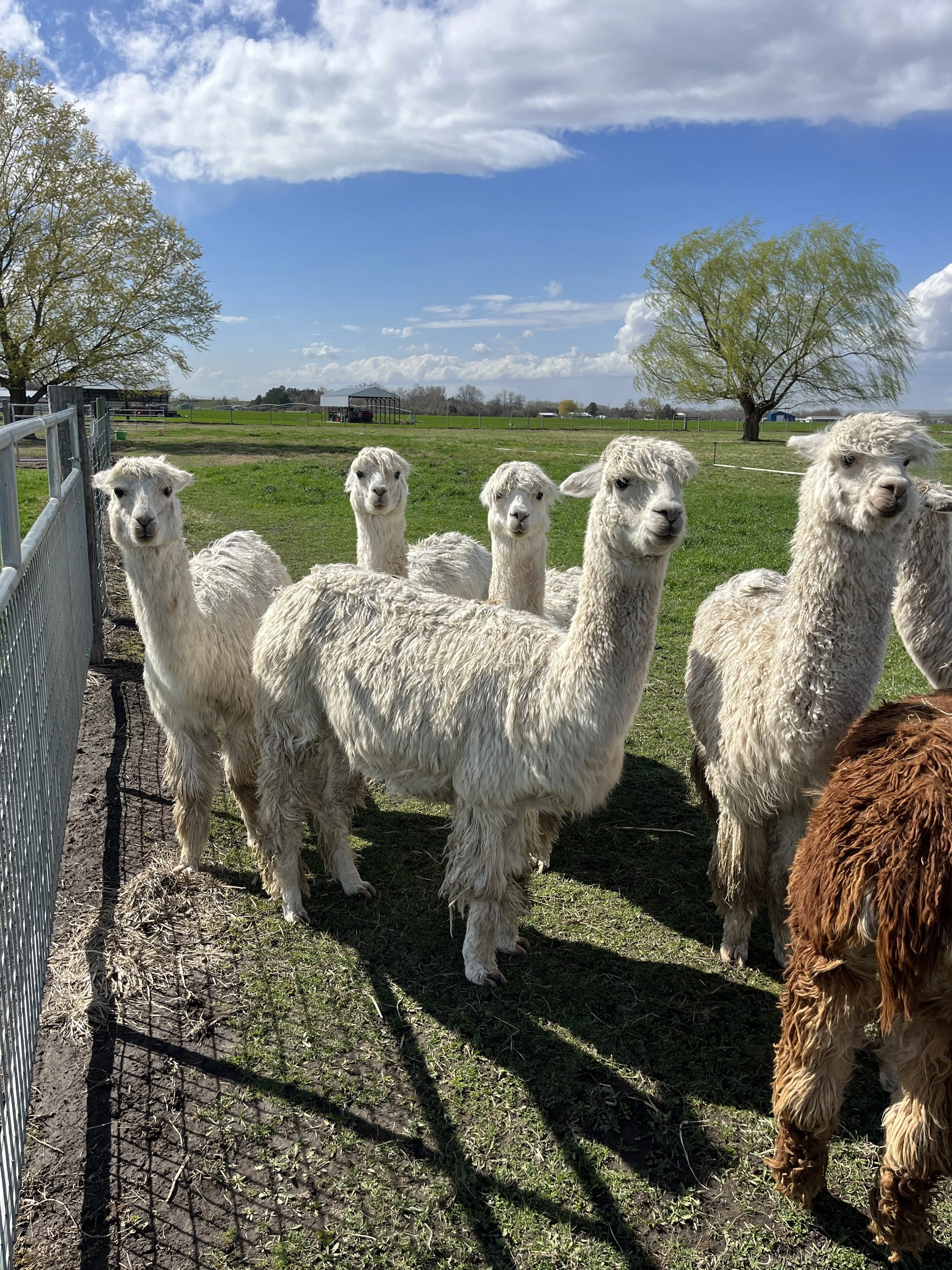 First of course is the herd matriarch and reigning Alpaca of the Century, Birdie. She really is the definition of what it means to be a foundation female — her genetics and mothering instinct are the backbone of the herd we have today.
